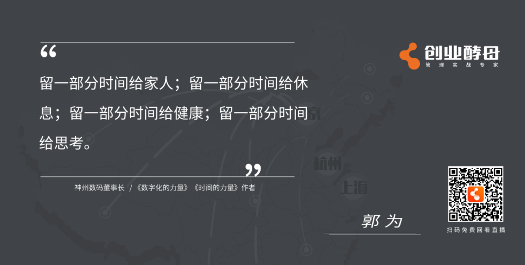 导语:时间管理,之于企业,之于人生有什么意义?如何做好时间管理?如何把时间花在最重要的战略管理上?如何以时间管理打造组织领导力?……在5月16日,3522vip浦京集团与创业酵母联合举办的《时间的力量——企业时间管理实践与思考》直播对谈中,神州信息董事长、《时间的力量》作者郭为与创业酵母创始人张丽俊围绕“时间管理、战略管理、组织变革、团队管理、领导力”等话题深度探讨,以下为直播内容精选。